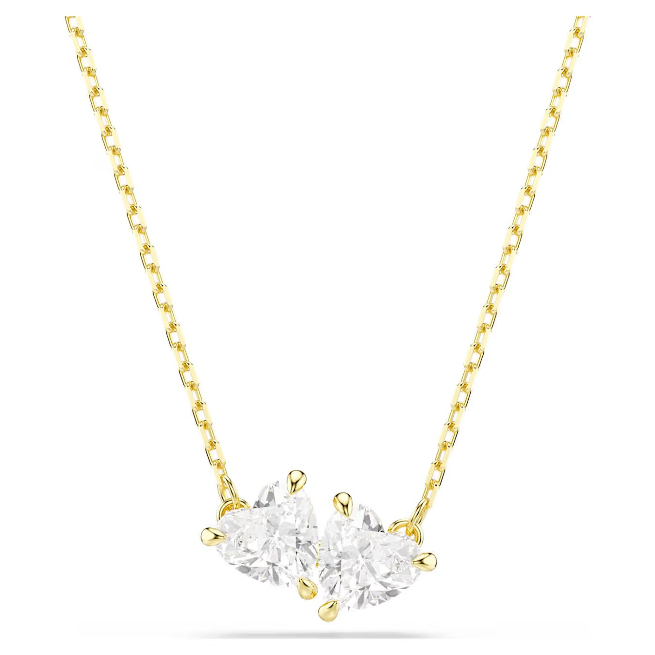 Questa collana Swarovski della famiglia Mesmera offre un design classico con una rivisitazione moderna. Impreziosito da splendide Swarovski Zirconia a forma di doppio cuore, il design è completato dalla placcatura in tonalità oro e dall’eleganza discreta della sua catena. Questa affascinante collana è il perfetto regalo romantico per la persona che ami.